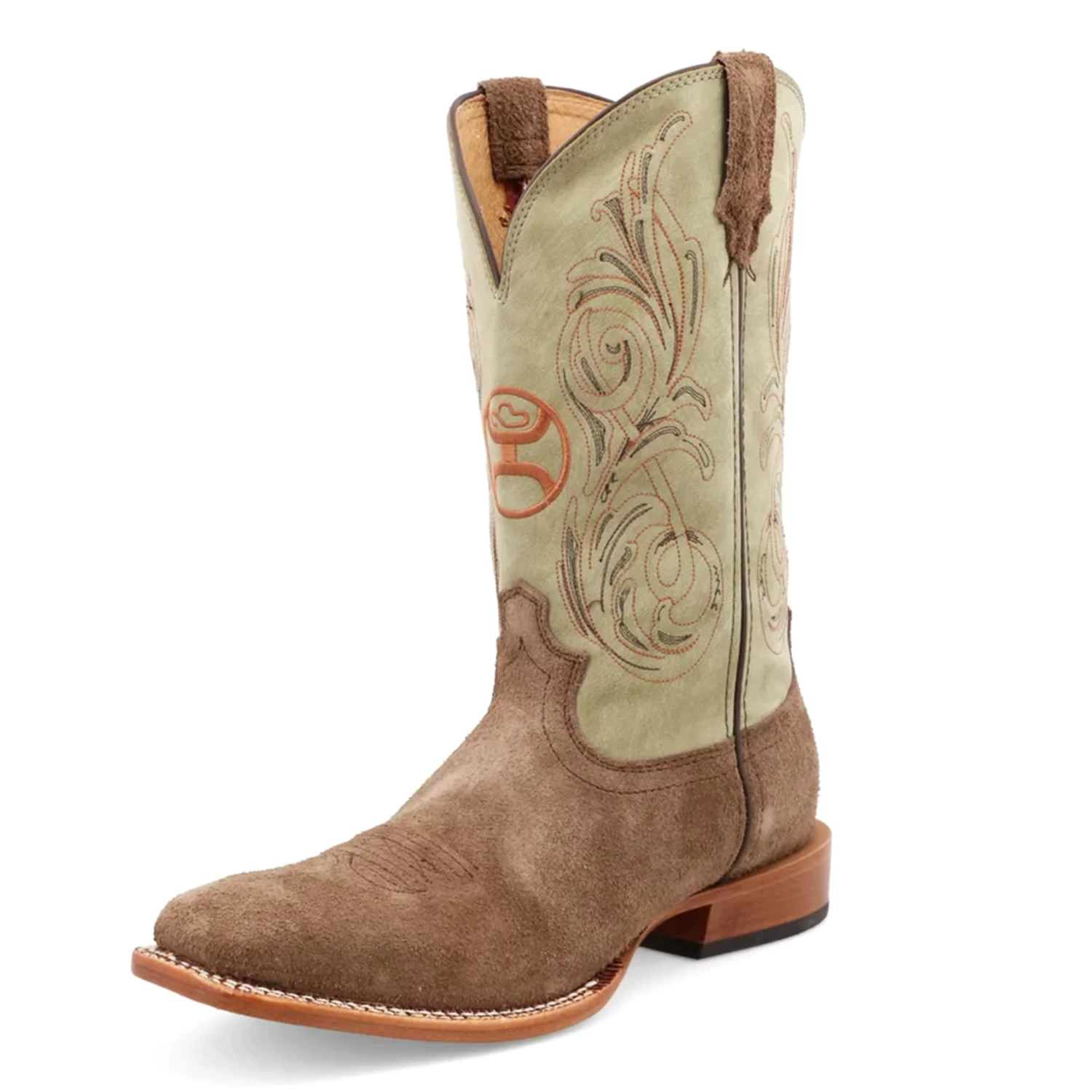 Twisted X Men’s 12″ WS Toe Hooey® Boot showcases the Hooey® brand’s distinctive styling. These boots are crafted with an attractive full-grain roughout leather and leatherTWXâ„¢ shaft, Leather TWX is 80% recycled leather that would otherwise end up in the landfill. Leather lining with taped interior seams. Twisted X® CellSole® comfort technology is an interconnected network of comfort cells that compress and rebound with every step. These Hooey® boots feature a leather outsole and walking heel with a spur shelf.