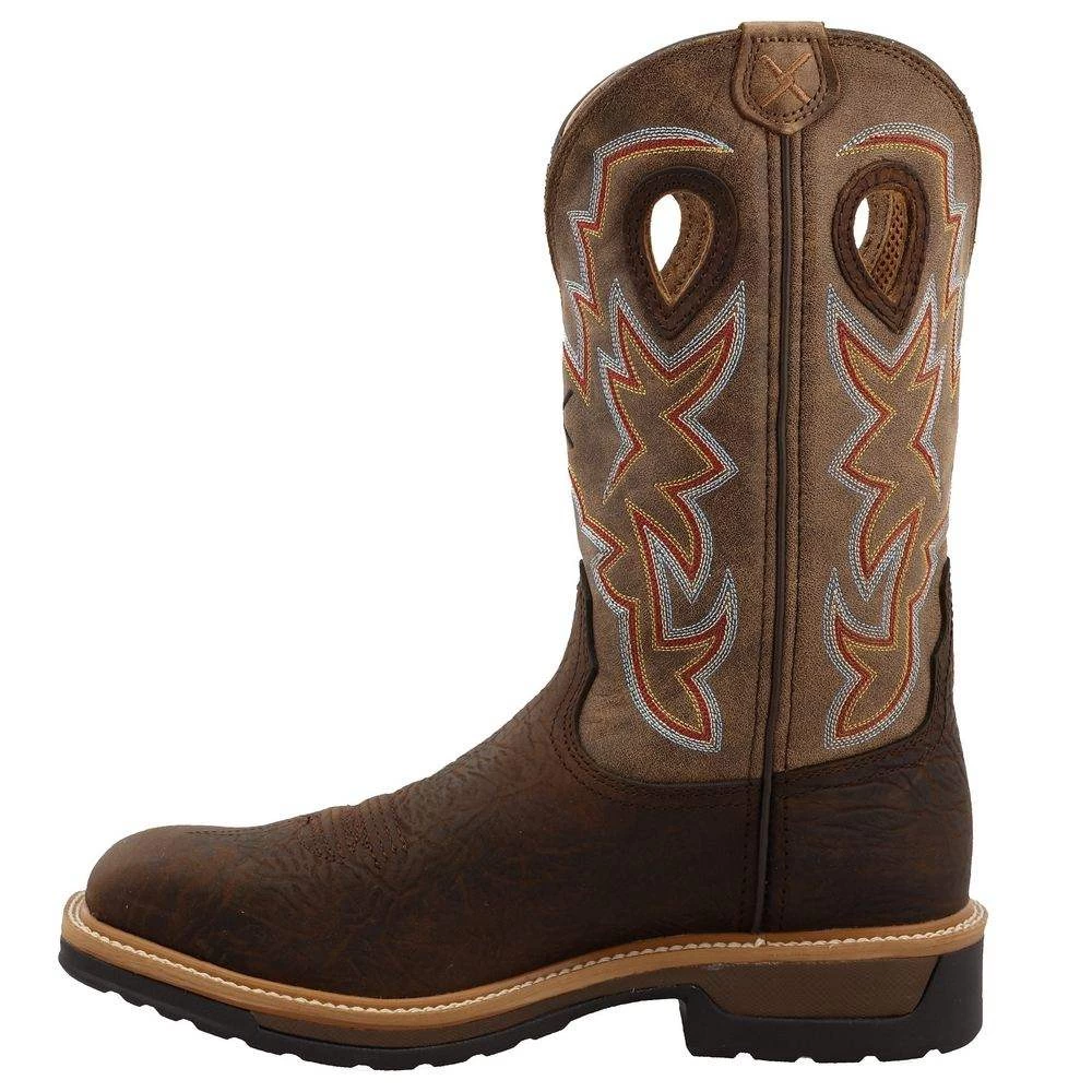 This Men’s 12″ Alloy Toe Lite Western Work Boot is handcrafted in traditional western boot profiles with signature full-grain leathers for a classic look. On the inside, they utilize air-mesh lining, taped seams, and a Twisted X® SD footbed for additional comfort. These comfort features are paired with a double-stitched storm welt, full-length composite XSD insole, a lightweight full-length compression-molded EVA midsole, and an oil/slip-resistant molded-rubber outsole to produce an industry leading work boot. Twisted X® Western Work Boots provide all the comfort and durability that you need to outperform any demanding work environment