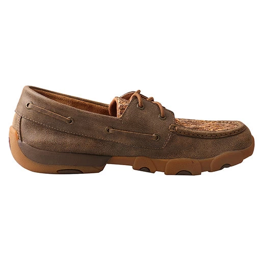 This fun Twisted X Men’s Driving Moc features a unique patchwork big fish design. Twisted X is known for comfort, style, and durability.Â
