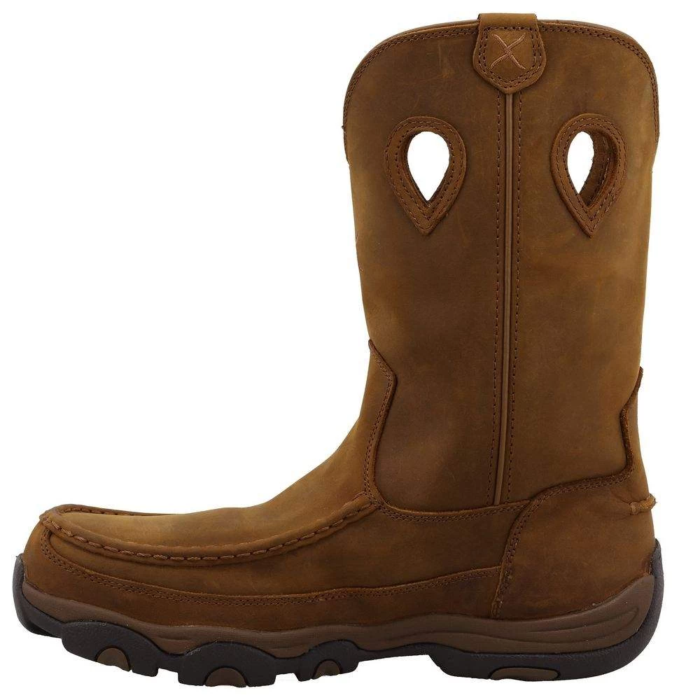 Men’s Cowboy work collection by Twisted X is exactly waht it says. Durable, heavy duty workboot, with a cowboy profile. The slab rubber outsole is extremely durable and slip resistant, while the Twisted X patented XSD insole provides stabiltiy and an excellent fit. The moisture-wicking, antibacterial and machine-washable removable footbed guarantees comfort for a long day on the job.