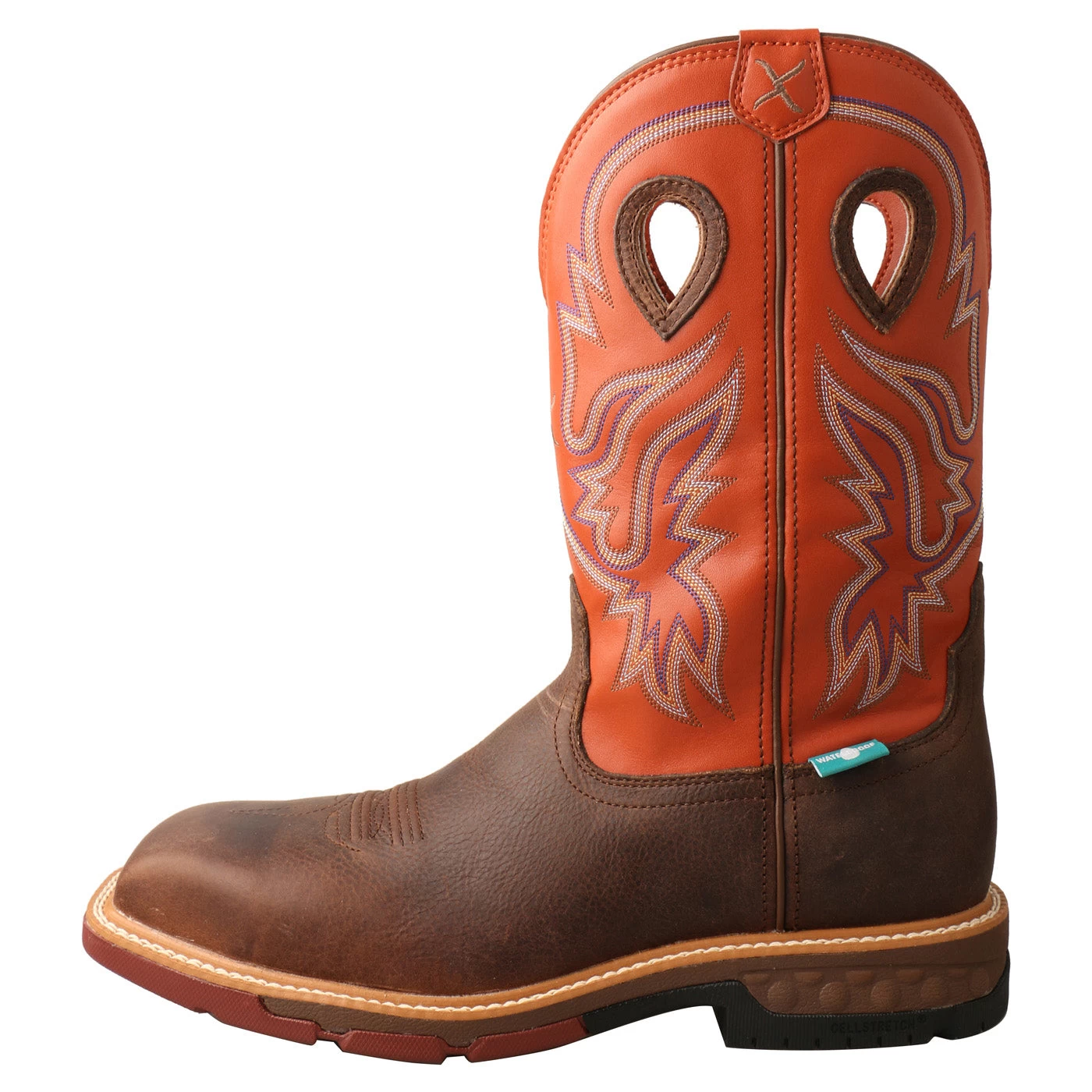 Twisted X Men’s 12″ Waterproof Nano Composite Safety Toe Western Work Boot was built for all day comfort. Full-grain leather foot and leatherTWXâ„¢ upper. LeatherTWXâ„¢ uses recycled leathers to create the same look and feel while reducing the environmental footprint. Featuring a Nano Toe made of tubes woven together to create a strong and lightweight safety toe. Electrical hazard compliant. CellStretch® comfort technology in the forefoot and heel. An interconnected network of comfort cells that compress and rebound with every step reducing stress on your legs. This boot is15% lighter than previous Twisted X versions.  The Electrical Hazard rated oil and slip resistant outsole provides added durability and improved traction.
