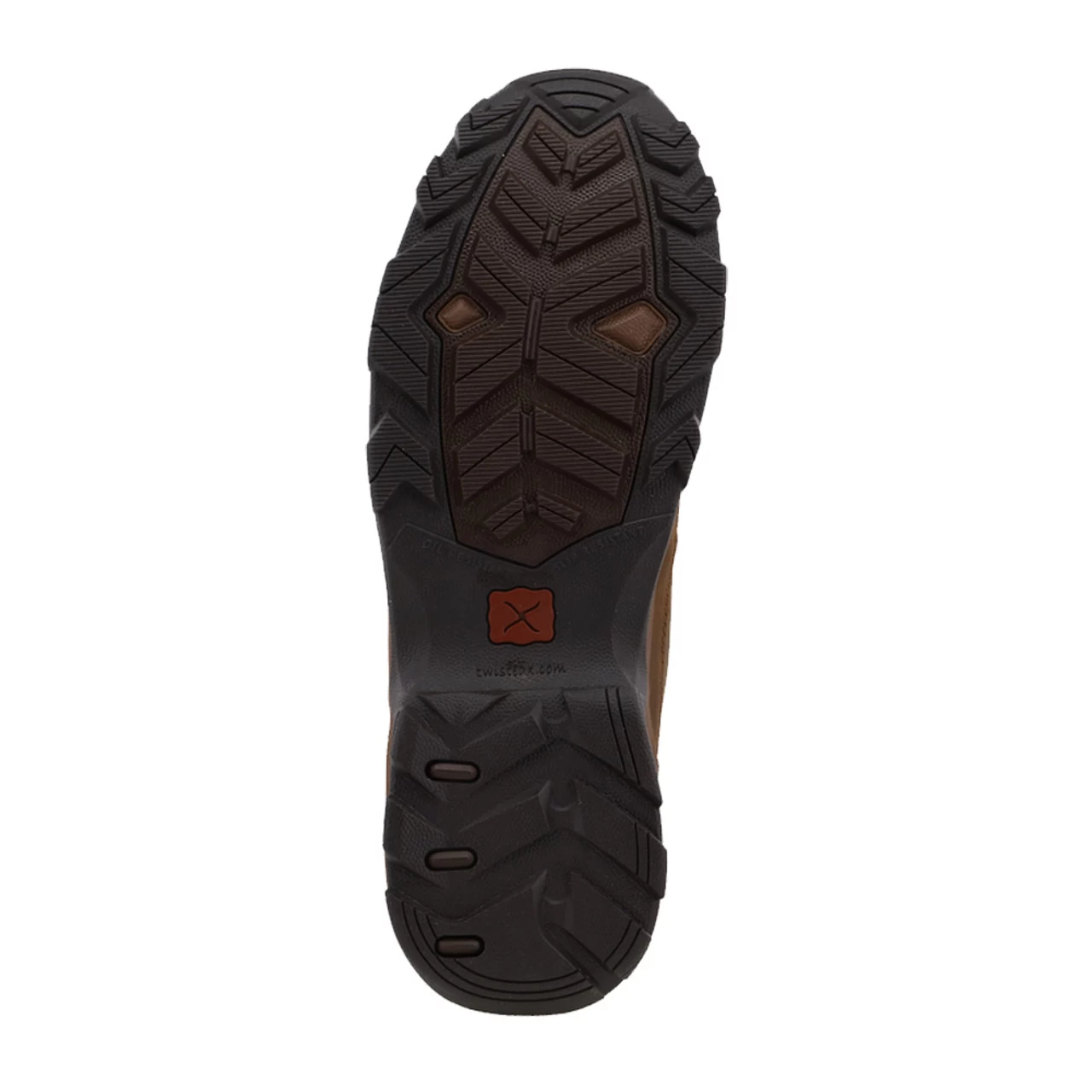 This is paired up to an oil and slip-resistant Twisted X Hiker outsole with beefy lugs for traction in challenging conditions. To improve the footwear lifespan this outsole has an integrated heel kick and toe cap. These features blend to produce a versatile boot that has increased functionality compared to other casual footwear.