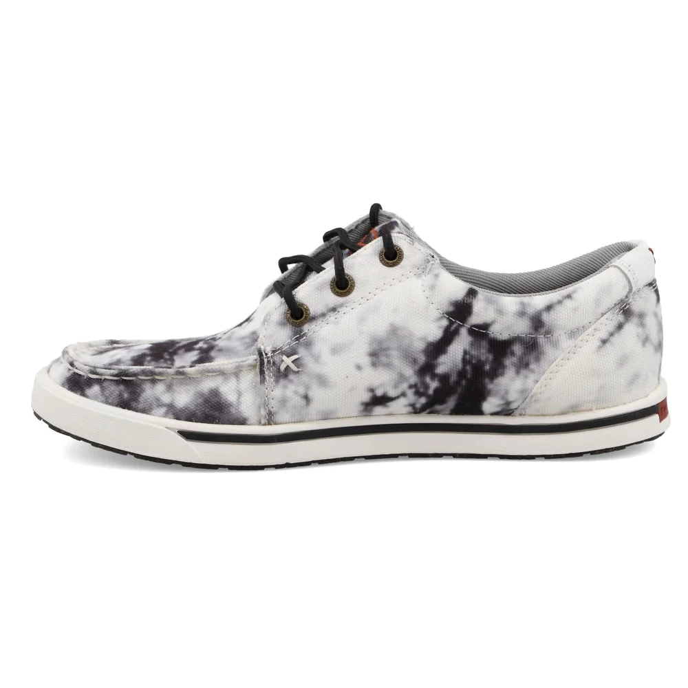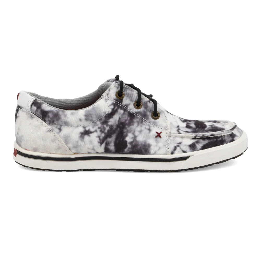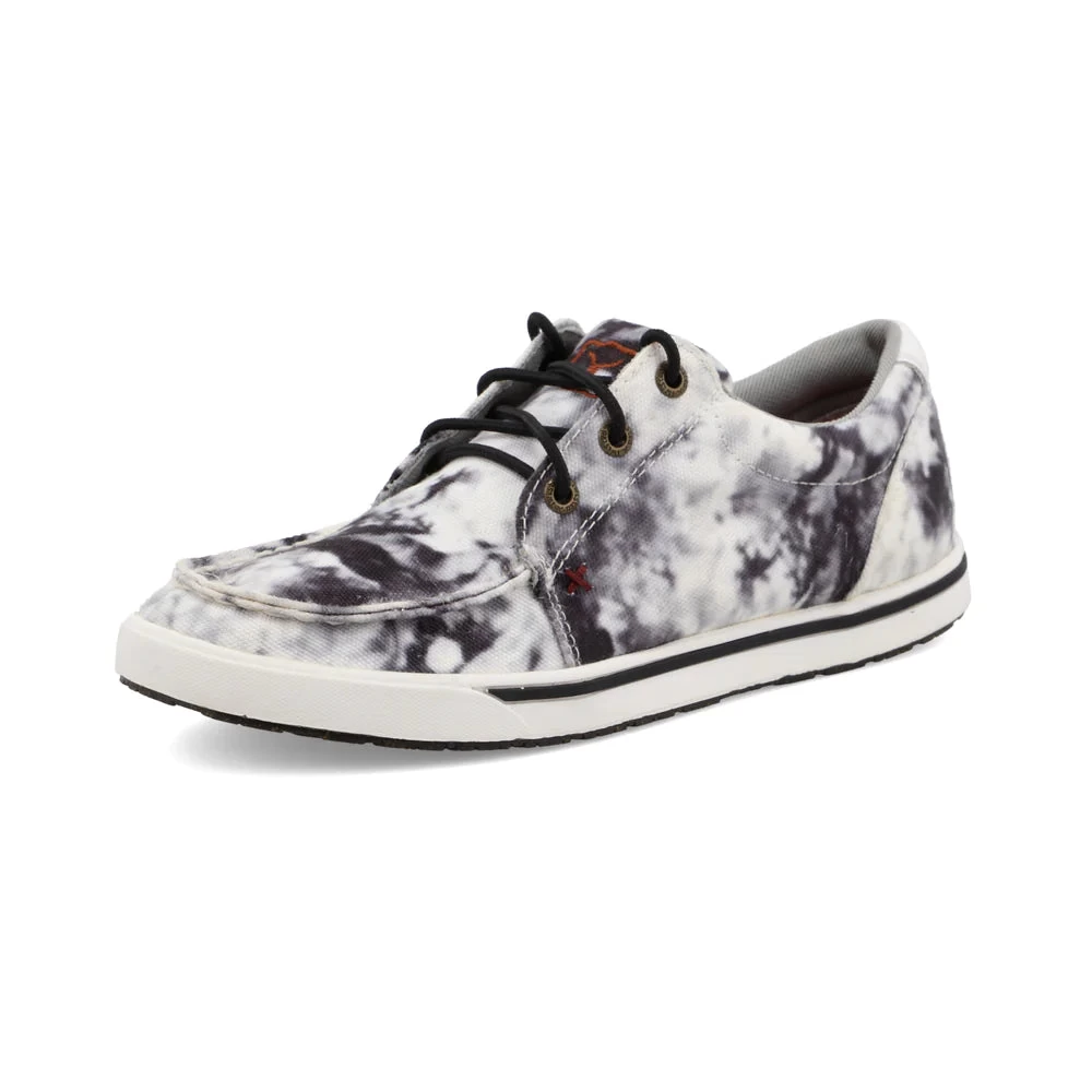 These Twisted X Women’s Kicks collection is a Twisted X take on classic styles you will love. These shoes use unique materials, fun patterns, and pops of color, while mixing style, quality, and comfort. These Twisted X black and white tie dye shoes are such a fun color to add to your closet. They have a flexible rubber outsole and super lightweight. Pair them with or without laces as the tongue has an elastic side panel.Â
