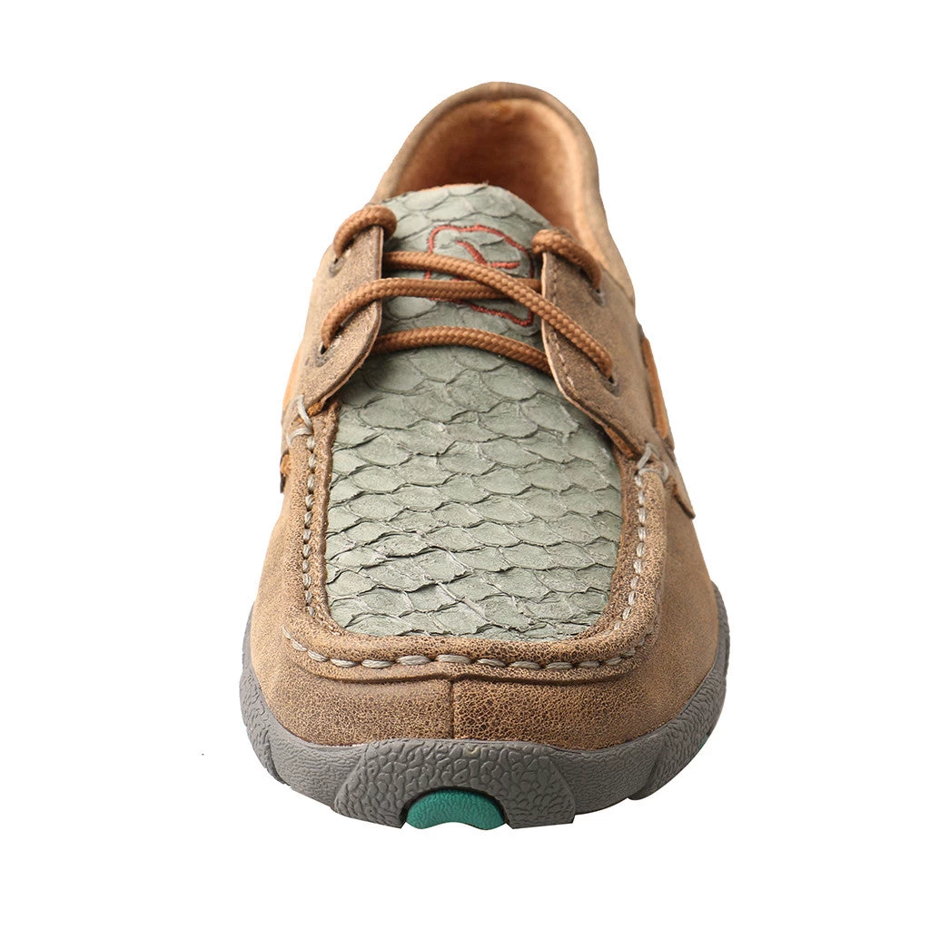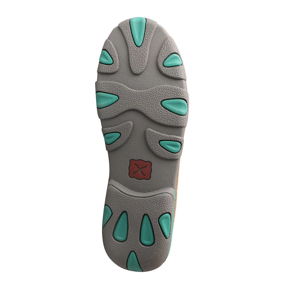 This Twisted X Women’s driving Moc features a Tyche Fish Toe in a beautiful Teal color with Teal Trim. These Mocs are known for their comfort, style, and durability.Â