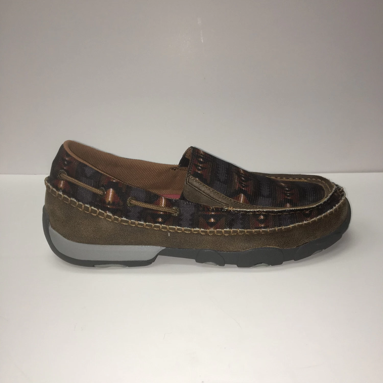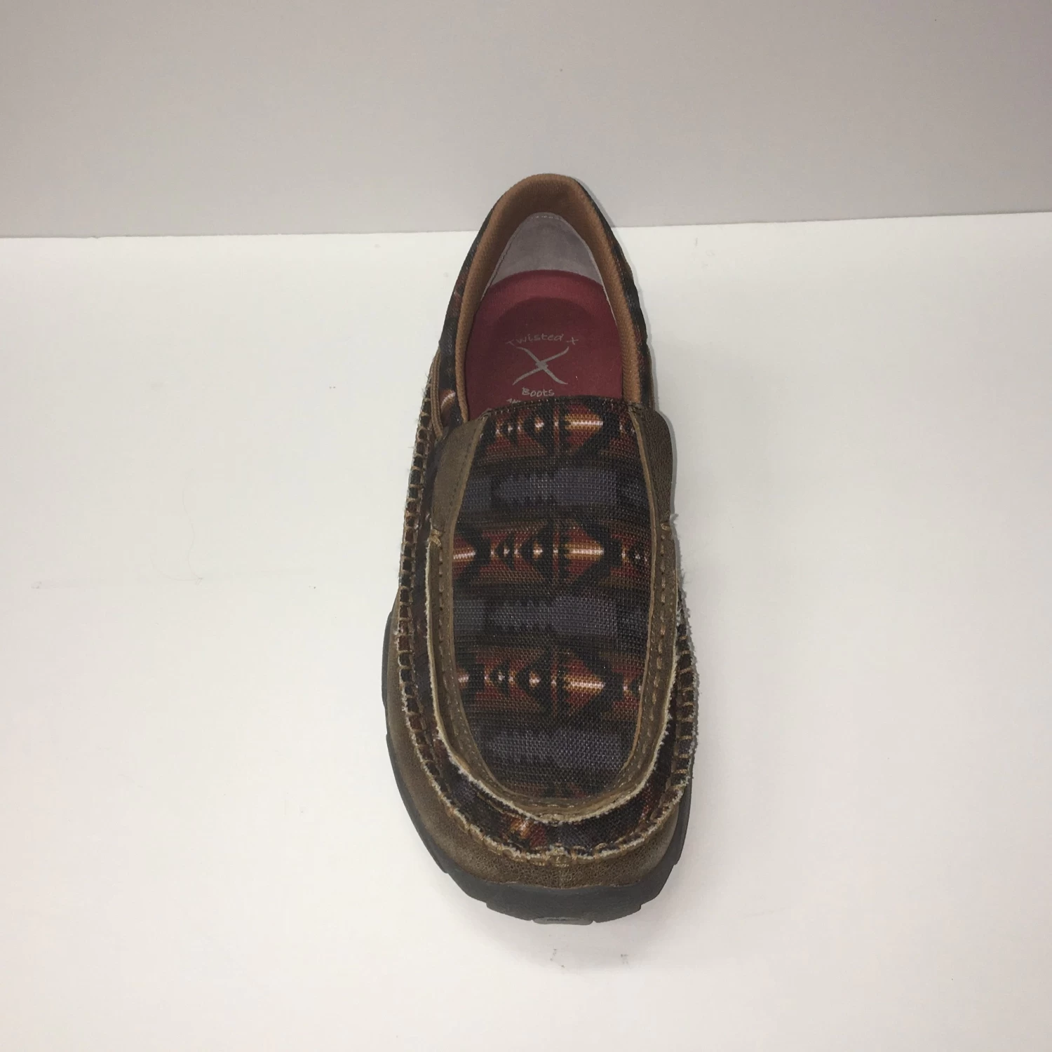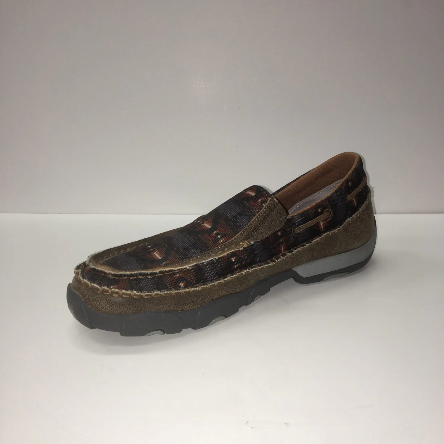 These men’s Twisted X are a Western Edge Exclusive, meaning you can only get them at the EDGE! They feature a canvas top with a brown and grey Aztec pattern on it! Its outsole is grey rubber and is oil and slip resistant. The footbed is antibacterial and is removable to put in the washer!Â